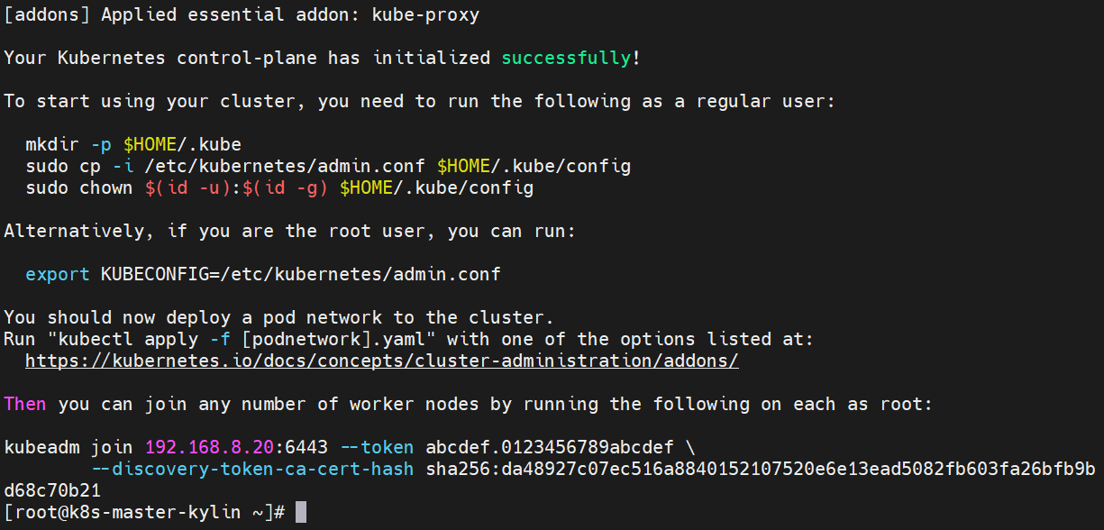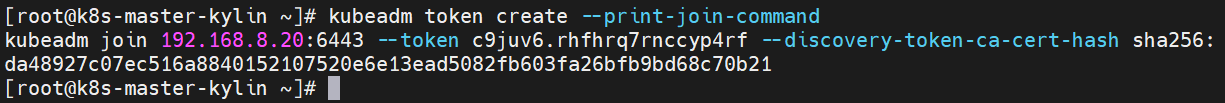 [root@k8s-master-kylin ~]# kubeadm token create --print-join-command