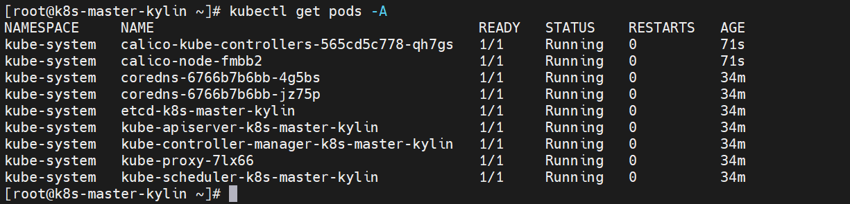 [root@k8s-master-kylin ~]# kubectl get pods -A