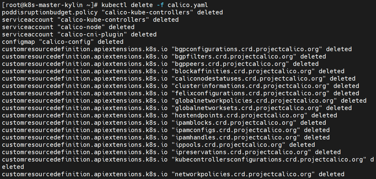 [root@k8s-master-kylin ~]# kubectl delete -f calico.yaml