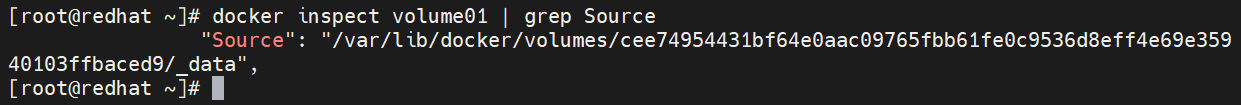 [root@redhat ~]# docker inspect volume01 | grep Source