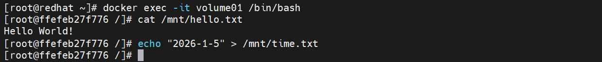[root@ffefeb27f776 /]# echo "2026-1-5" > /mnt/time.txt