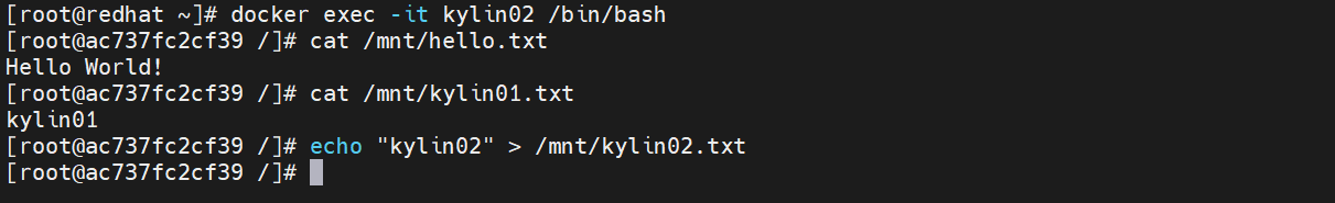 [root@ac737fc2cf39 /]# echo "kylin02" > /mnt/kylin02.txt