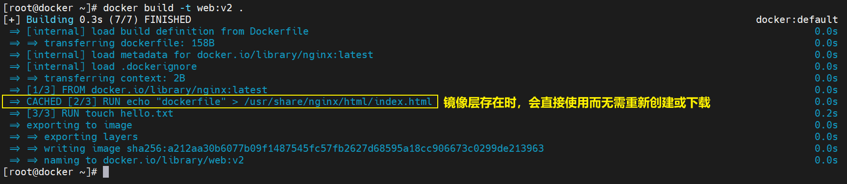 root@docker:~# docker build -t web:v2 .