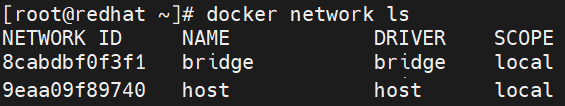 [root@redhat ~]# docker network ls