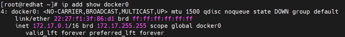 [root@redhat ~]# ip add show docker0