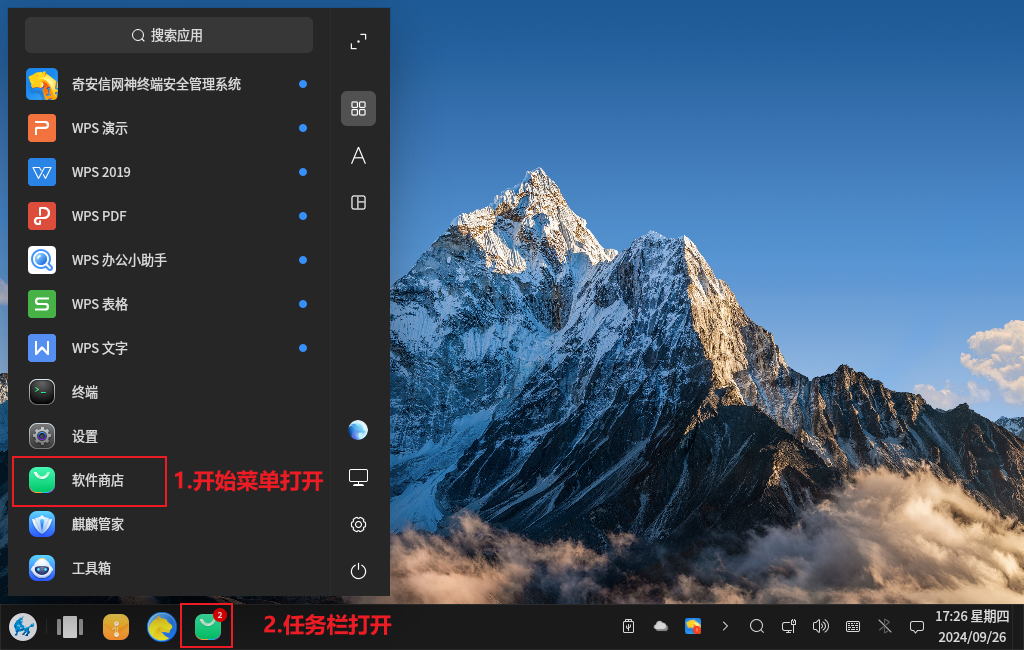 在桌面版操作系统中提供图形化的软件商店:麒麟软件商店